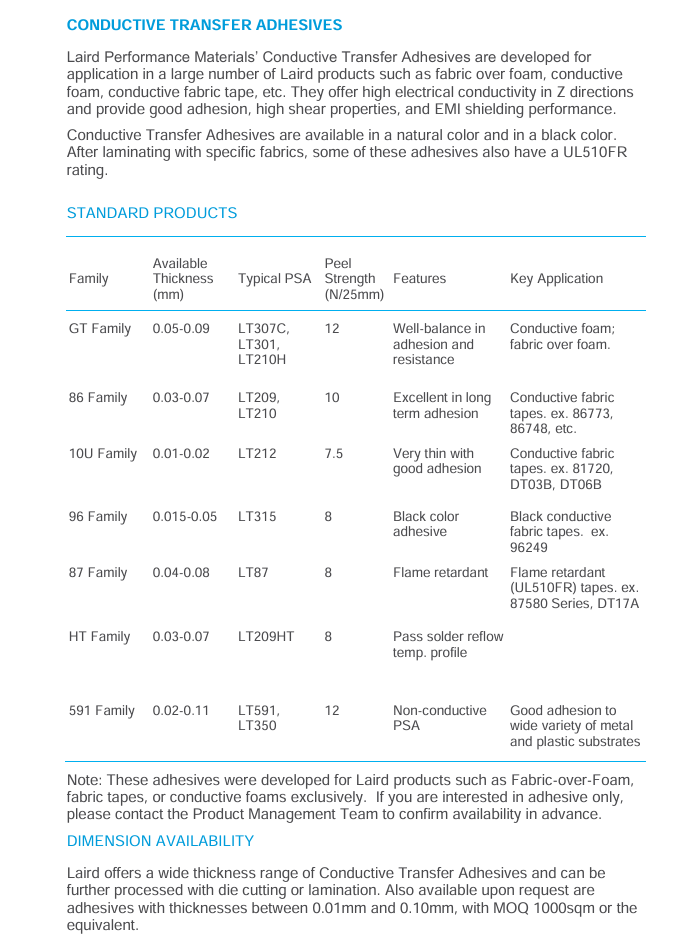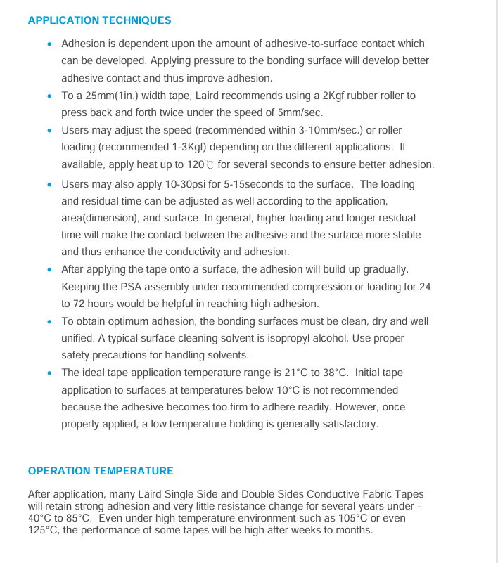 价值: 相比单面胶带或机械固定方式,双面导电布胶带提供了极高的剪切力和剥离强度。莱尔德的胶粘剂配方能牢固地粘接各种难粘材料,如低表面能的塑料(PP、PE)、粉末冶金件、粗糙金属表面等。