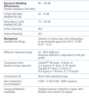 屏蔽效果通常为60 dB - 110 dB,范围为100 MHz至10 GHz